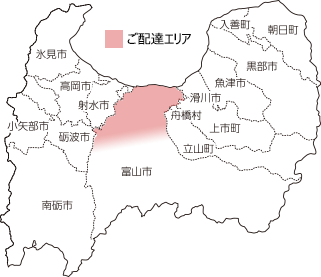 - 15,000円以上のご注文から無料で配達を行っております。配達エリアは旧富山市と旧婦中町に限ります。